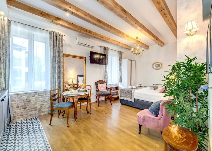Hotellet Le Monde - Vintage Accommodation Split som har ett mysigt läge cirka 25 minuters promenad från Bene-stranden, erbjuder ett arkeologiskt museum. Detta 4-stjärniga hotell erbjuder också gästerna WiFi i allmänna utrymmen.
